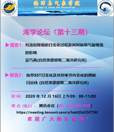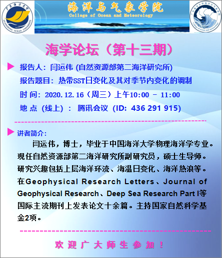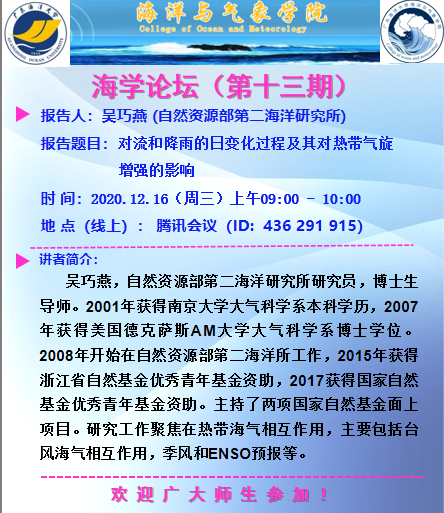中国科情色视频海洋研究所侯一筠研究员应邀作学术讲座(预告)