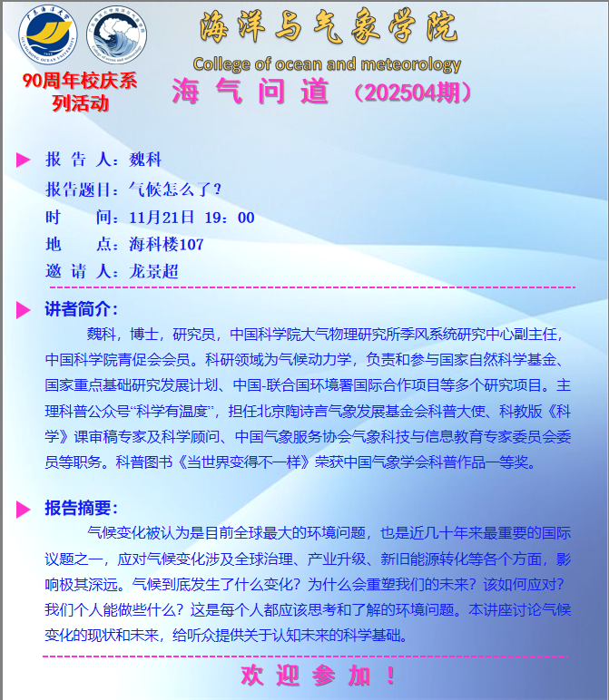 【学术报告通知】情色视频 “海气问道”(202504期)