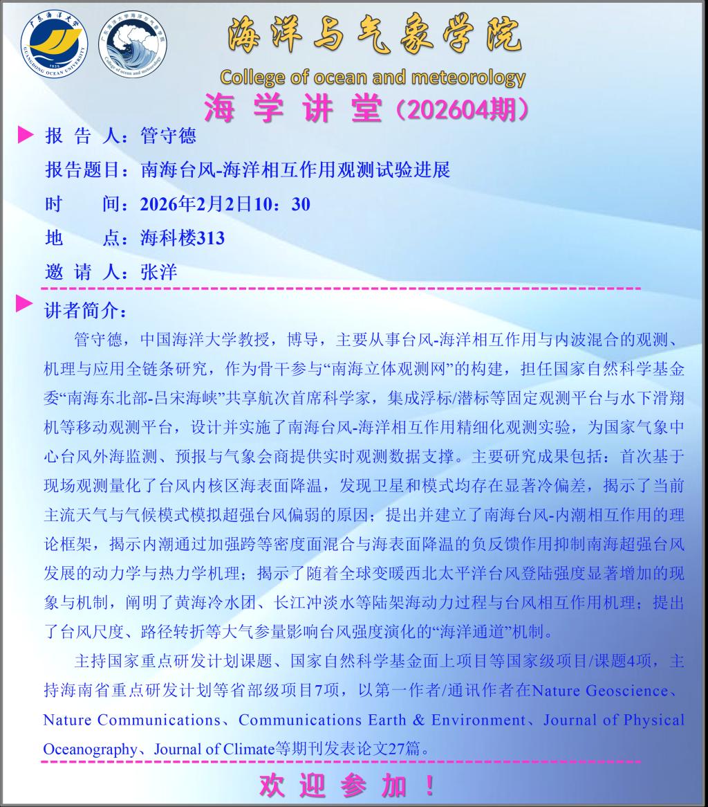 【学术会议通知】情色视频 “海学讲堂”(202604期)