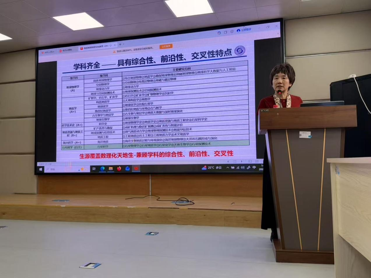宋玉环处长首先介绍了地质与地球物理研究所的发展历程与学科优势。她表示,该所是国内最早拥有硕士和博士学位授予权的研究单位之一,现设有地质学、地球物理学、地质资源与地质工程、行星科学、科学技术史五个一级学科,以及海洋地质学二级学科。研究所目前拥有研究生导师369人,其中博士生导师170人,包括院士18人、国家杰出青年科学基金获得者43人、国家优秀青年科学基金获得者31人。学科体系完善,致力于培养具备多学科交叉研究能力的复合型人才。她尤其欢迎地质、海洋、地理、环境、生态、水文、数学、物理、计算等相关专业本科生和研究生报考。