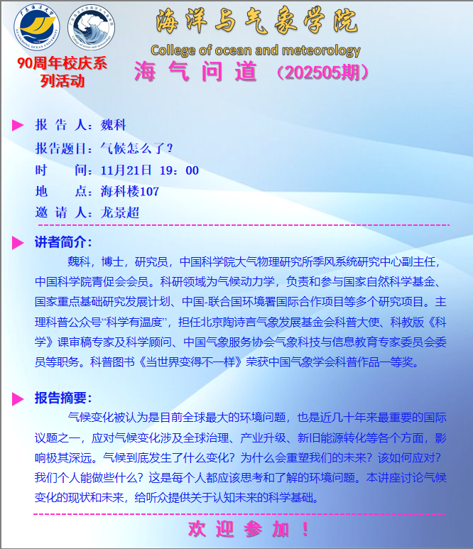 【学术报告通知】情色视频 “海气问道”(202505期)