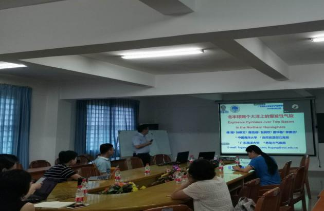 9月22日上午,傅刚教授以“MIT大气科学系对人才的培养及给我们的启示”为第一个报告题目,介绍了推动Synoptic-Dynamic Meteorology快速发展的几个关键人物,即Frederick Sanders教授及其所培养的Howard Bluestein教授、Lance Bosart教授、Bradley Colman博士和Todd Glickman。针对Frederick Sanders教授及其弟子把气象研究、气象教育和气象商业活动相结合,推动Synoptic-Dynamic Meteorology的快速发展的一些做法,发表自己的一点感想和看法。又以“北半球两大洋上的爆发性气旋”为题作了第二个报告,追溯了爆发性气旋的研究历史,研究中对爆发性气旋的定义进行了修正,介绍了北半球两个大洋上爆发性气旋的统计特征,探究了不同形状位涡与爆发性气旋发展的联系。报告结束后,傅教授和与会师生进行了热烈的交流讨论,并期待有更多学者关心“爆发性气旋”。
