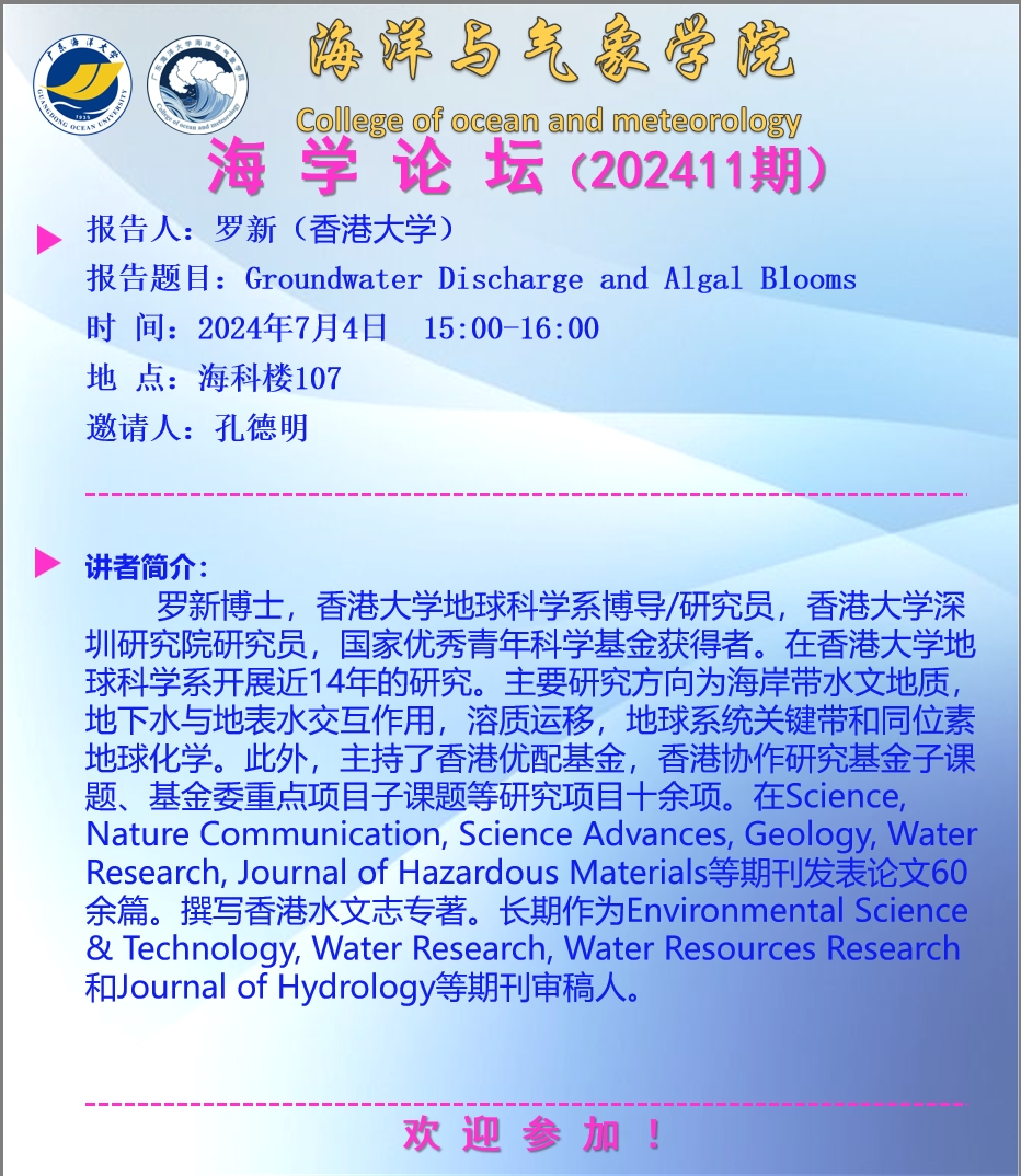 【学术会议通知】情色视频 “海学论坛”(202411期)