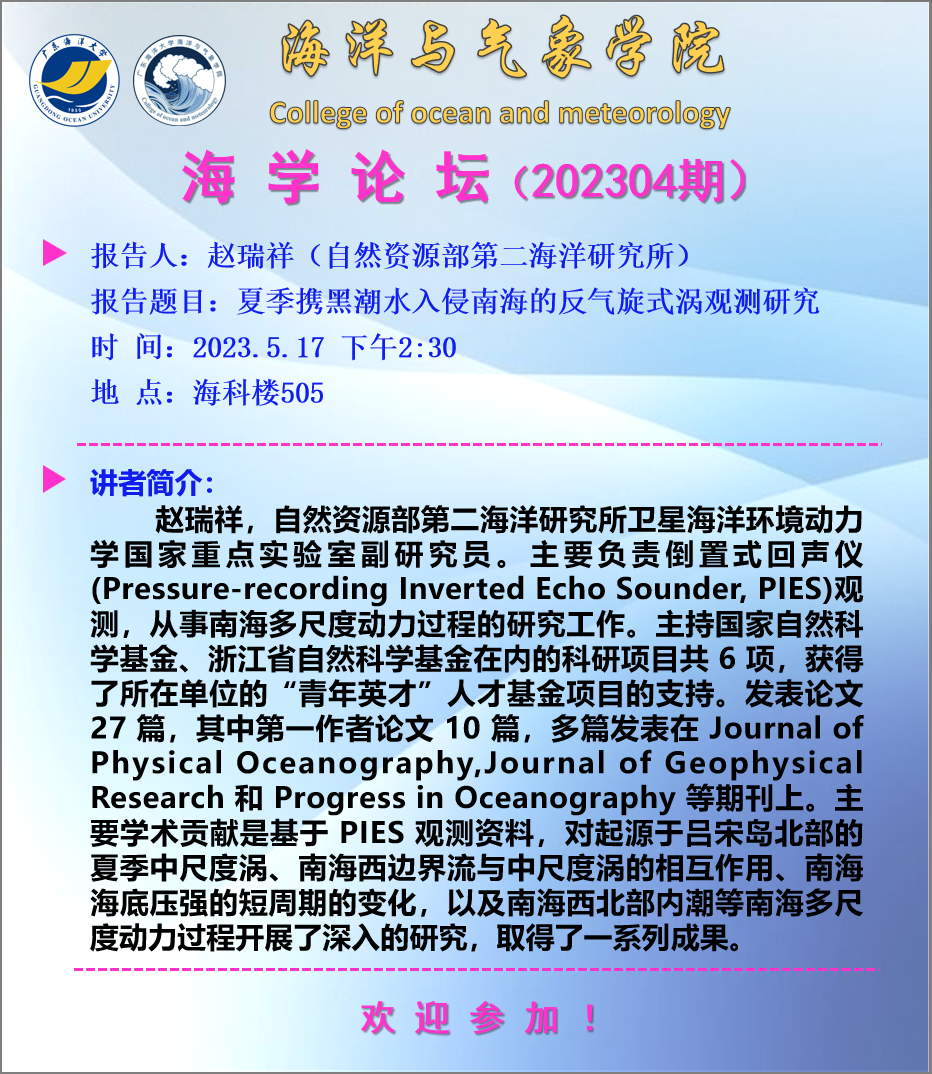 【学术会议通知】海学论坛 2023 05期