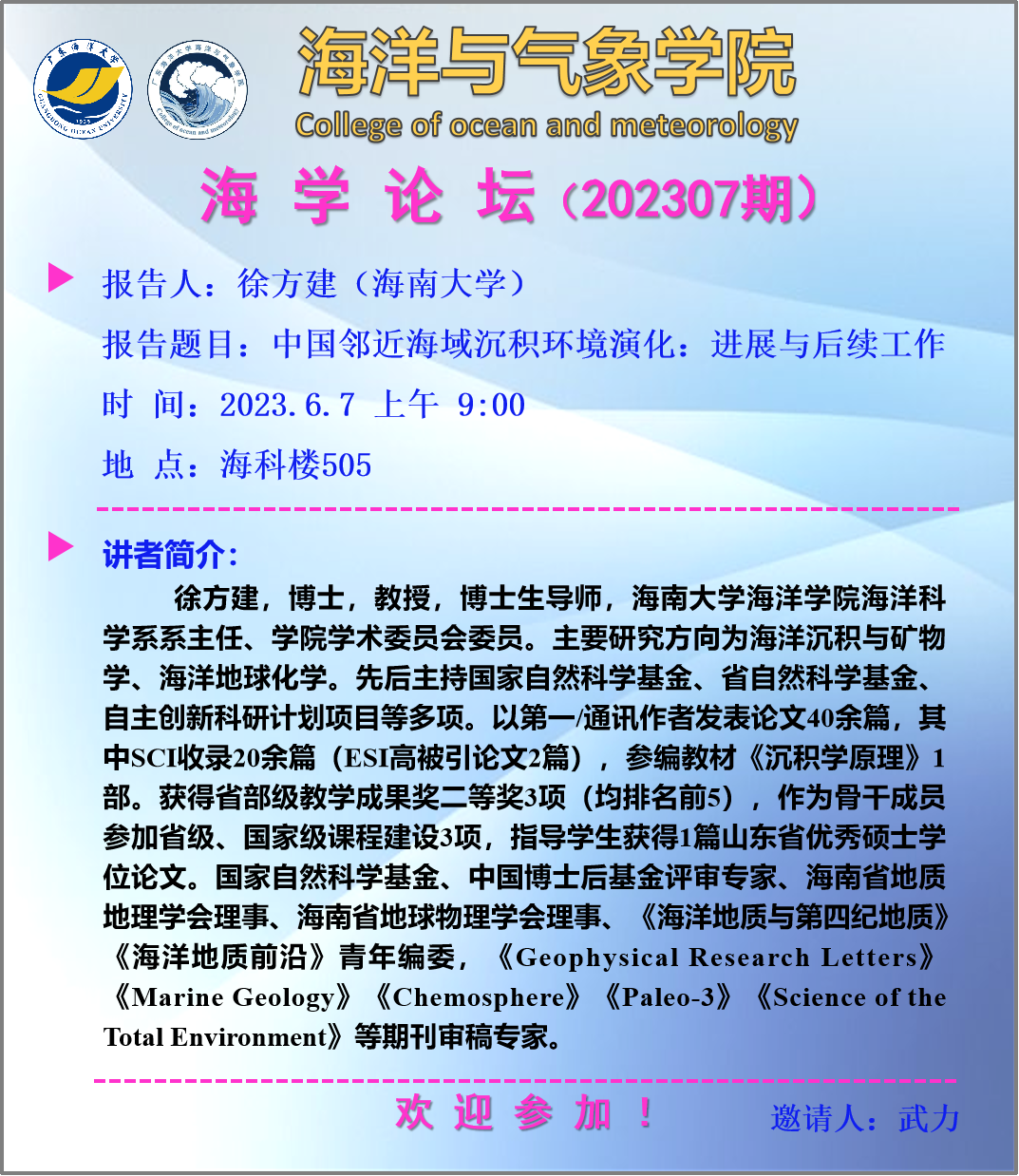 【学术会议通知】海学论坛 2023 07期