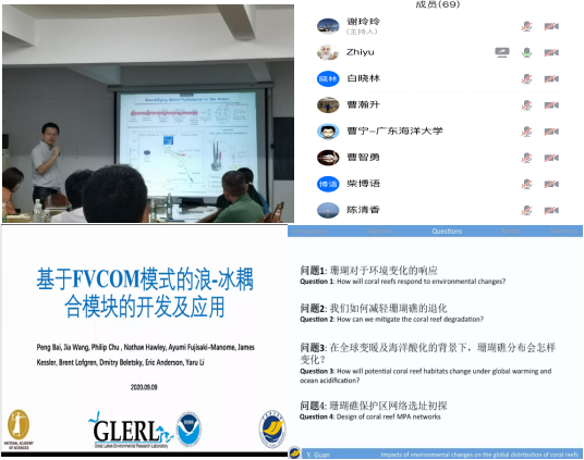 白鹏老师以“基于FVCOM模式的浪-冰耦合模块的开发及应用”为题,介绍了基于FVCOM模式开发的浪-冰双向耦合模块及其在五大湖区域的应用。
